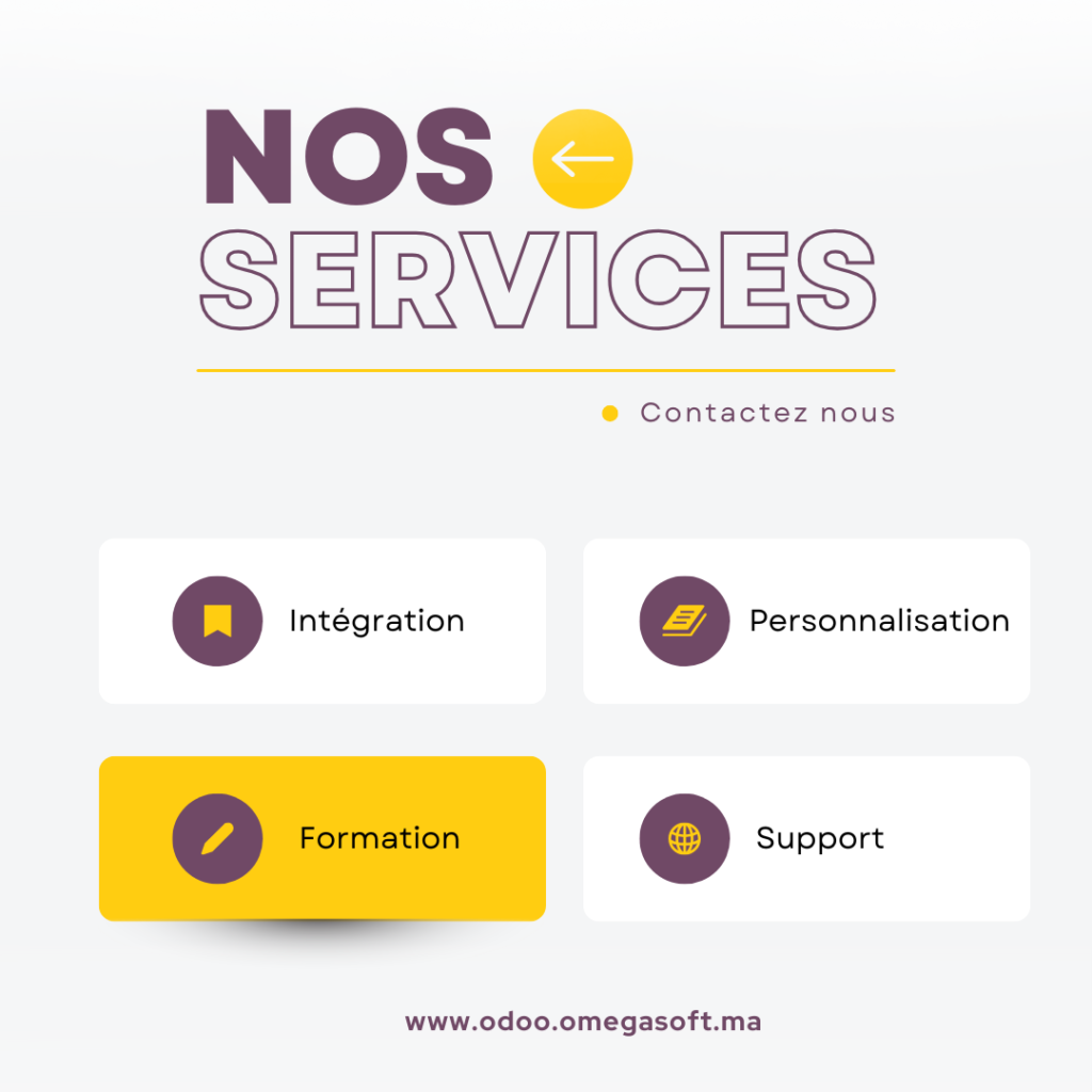 Autant que Intégrateur de Odoo au maroc, nous vous proposons des services Odoo complets pour vous accompagner l’installation, le paramétrage et la mise en service de vos applications Odoo.
